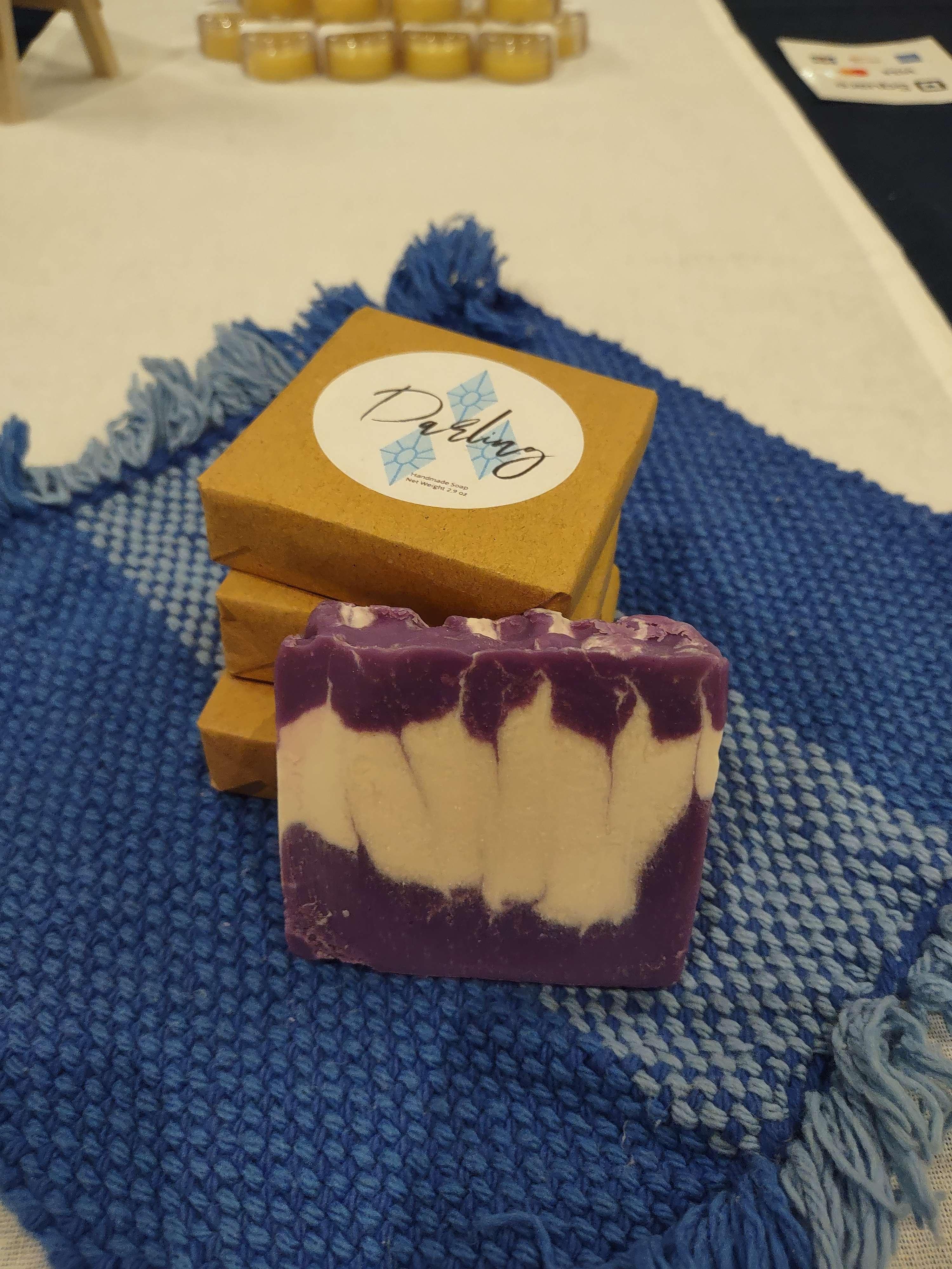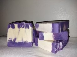 Ingredients: Saponified oils of Olive, Palm, Coconut, Hemp Butter, Sweet Almond, and Castor, Goat's Milk, Fragrance Oil, Mica Powder